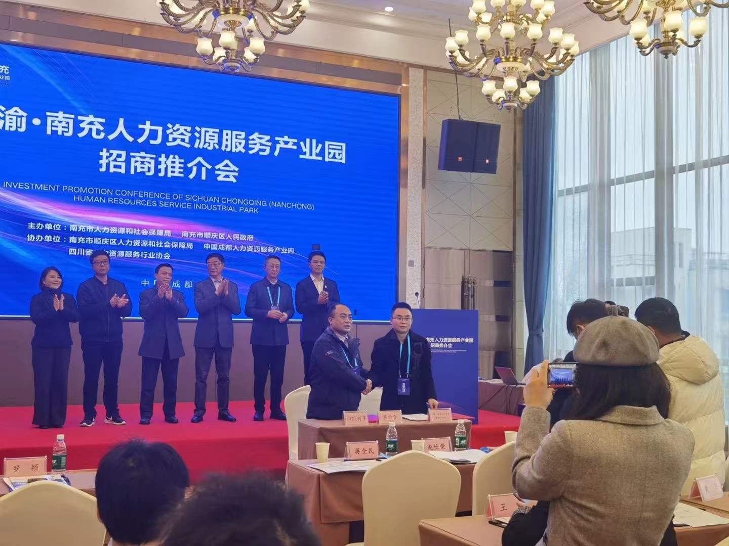 “集聚平台,促发展”12月16日,川渝·南充人力资源服务产业园招商推介会在成都成功举行。会上我司李明李总与南充市人力资源服务产业园签订了入园协议。